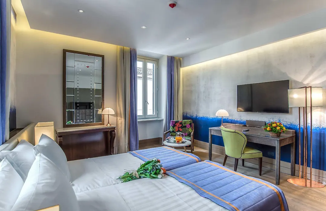 Martis Palace de Rome offre 27 chambres avec un minibar, ainsi qu'une TV à écran plat avec des chaînes satellite. Certaines des chambres, conçues dans un décor français, disposent d'un bidet et d'une douche ouverte parmi d'autres équipements. Elles viennent avec des équipements comme un sèche-cheveux et des serviettes.
